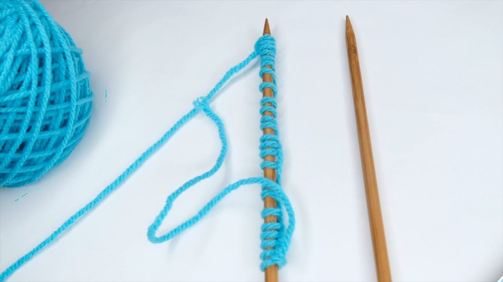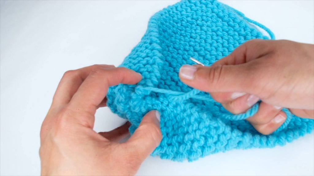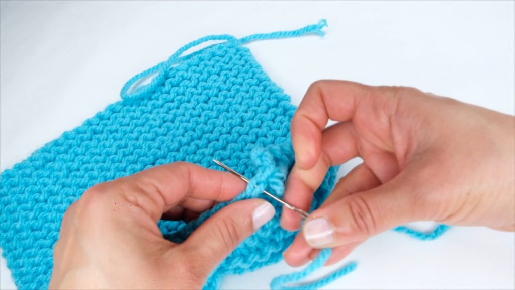 Cast off the stitches and make a knot, leaving 10 inches of yarn.