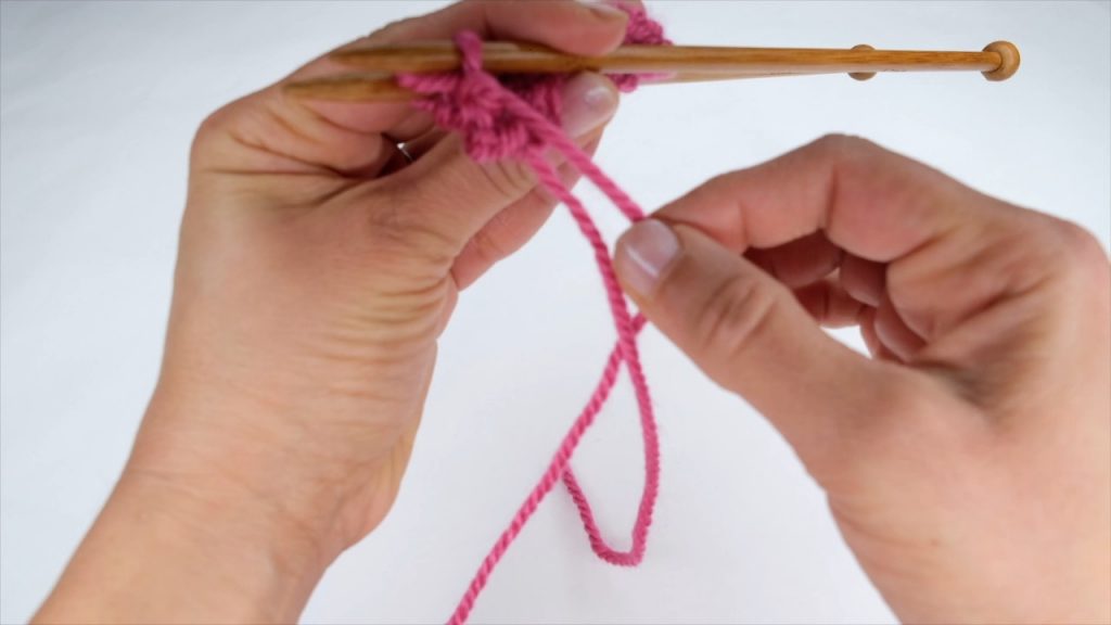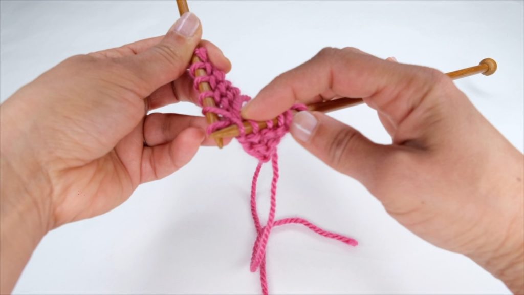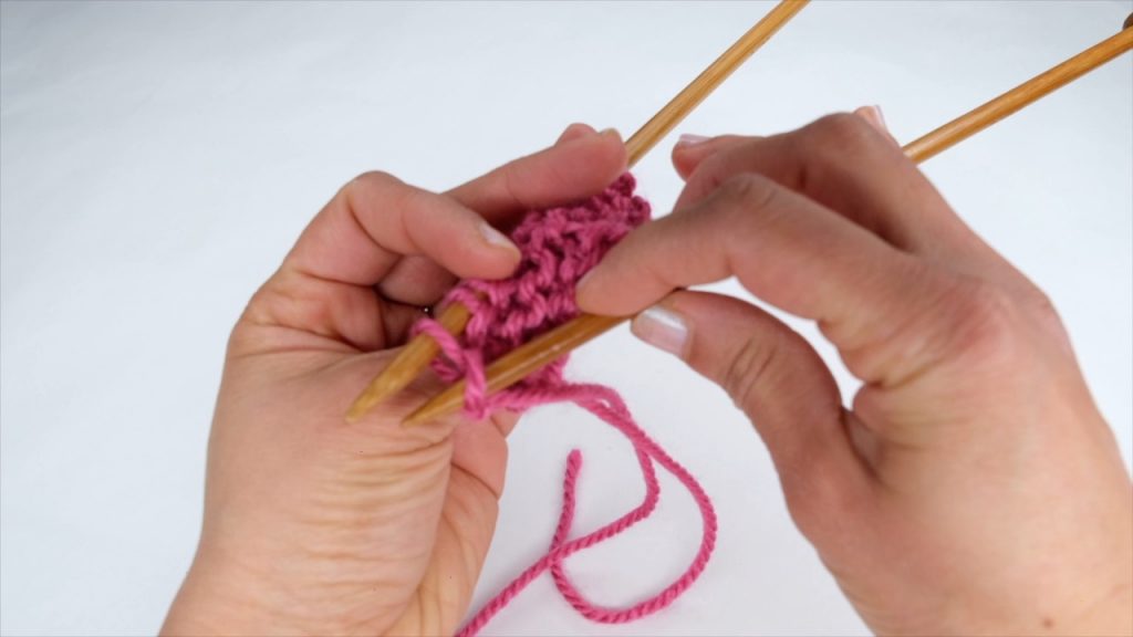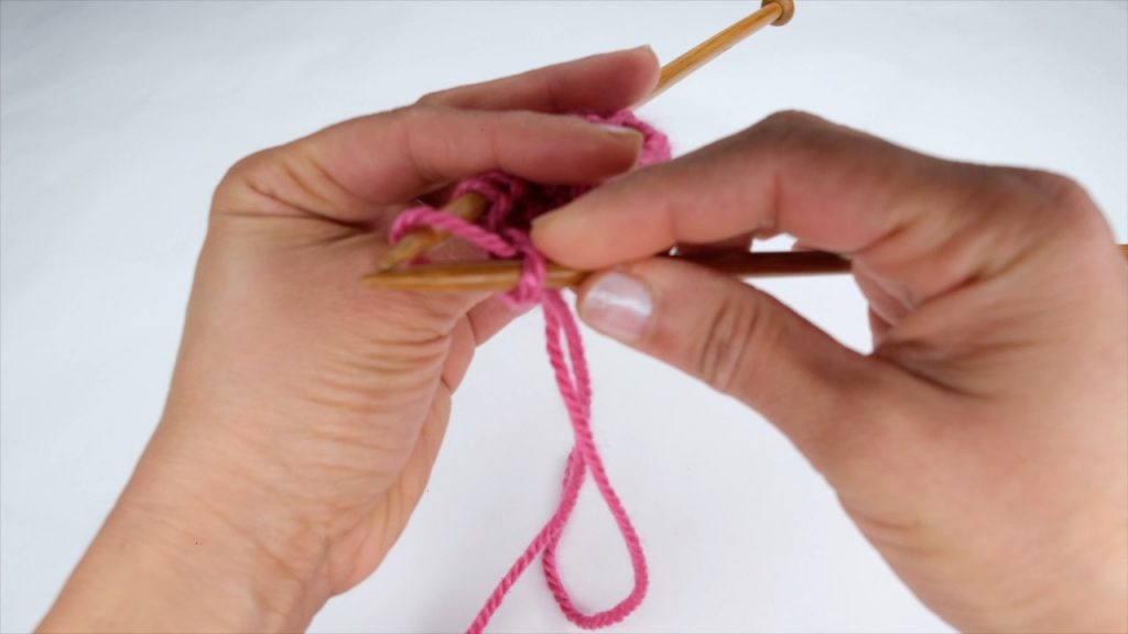 Pull the working end of the yarn so it is again attached to the top stitch on the needle in your non-dominant hand.